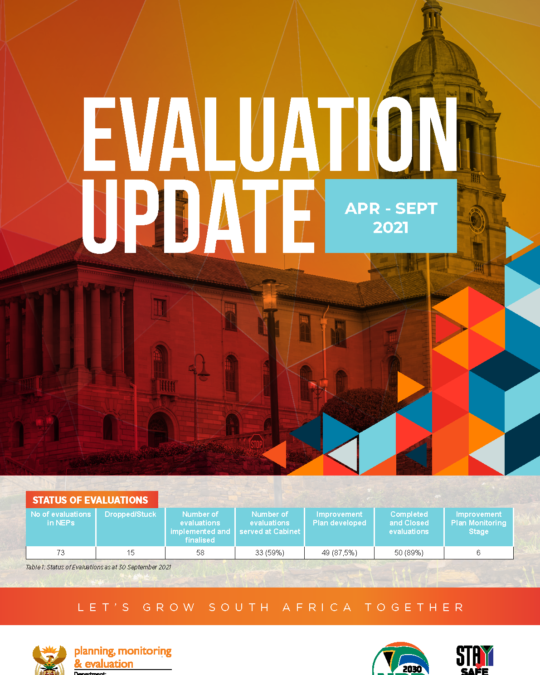 Since then, more than 67 evaluations have been completed at the national level, with more being done through provincial and departmental evaluation plans. The Department of Planning, Monitoring & Evaluation (DPME) in the Presidency, facilitates and support effective planning, monitoring and evaluation of government programmes aimed at improving government outcomes and impact on society.