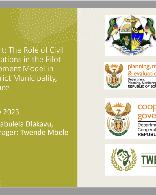 DPME have been instrumental to facilitating shared learning within the Twende partnership. More recently, they are working on innovating in the processes and methods of rapid evaluation, creating linkages within government for a more gender responsive system, and improving strategic communications for evaluation.