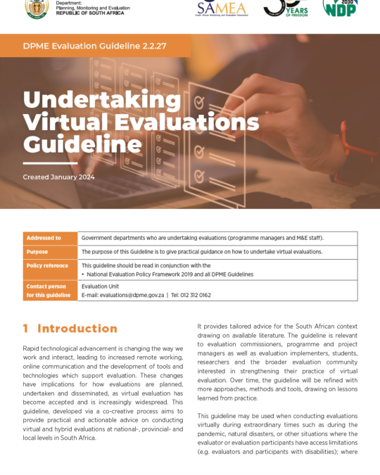 South Africa began its journey to institutionalise an evaluation system relatively early in Africa, with a National Evaluation Policy Framework coming into effect in 2011.