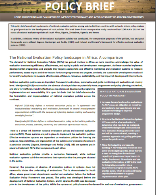 The National Evaluation Policy landscape in Africa: A comparison