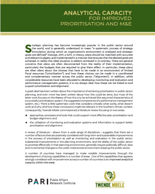 Analytical capacity for improved prioritisation and M&E