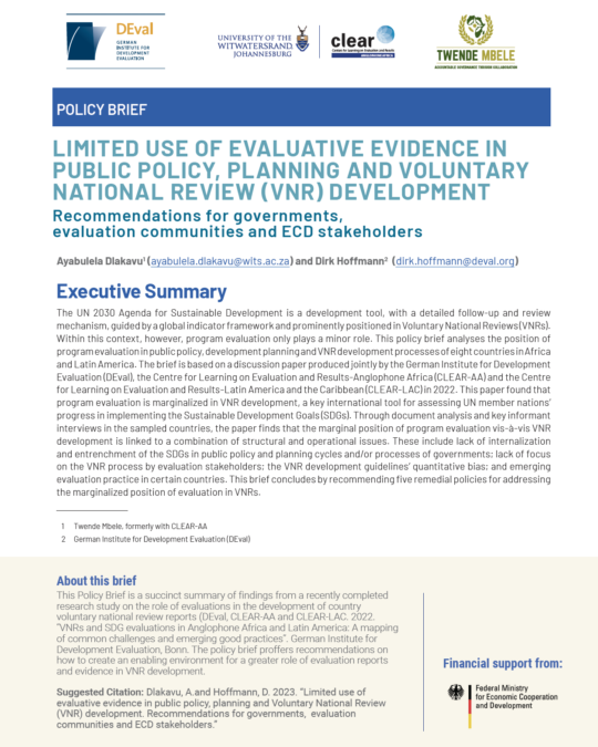 Limited Use of Evaluative Evidence in Public Policy, Planning and Voluntary National Review (VNR) Development – Policy Brief