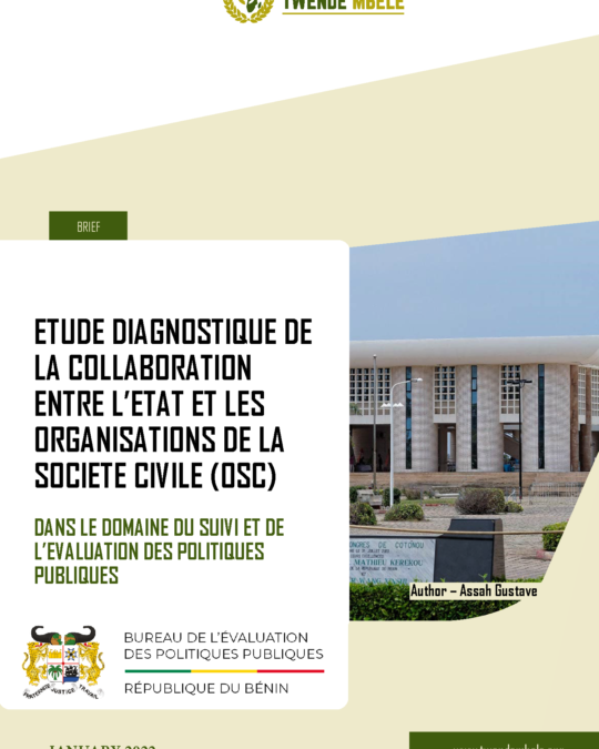 Etude Diagnostique de la Collaboration Entre l’Etat et Les Organisations de la Societe Civile (OSC) Dans le Domaine du Suivi et de l’Evaluation Des Politiques Publiques – Rapport Final