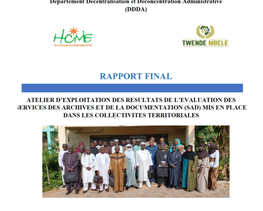 Atelier d’Exploitation Des Resultats de l’Evaluation Des Services Des Archives Et De La Documentation (SAD) Mis en Place Dans Les Collectivites Territoriales