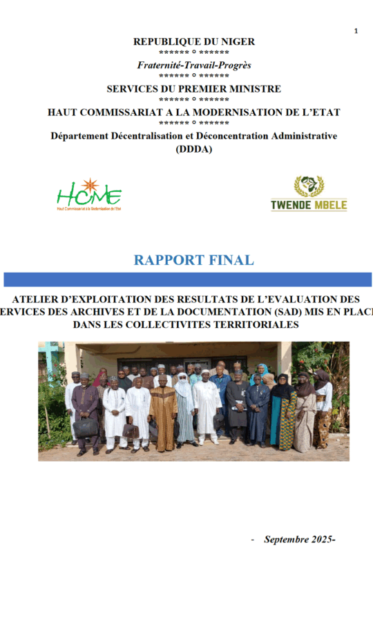 Atelier d’Exploitation Des Resultats de l’Evaluation Des Services Des Archives Et De La Documentation (SAD) Mis en Place Dans Les Collectivites Territoriales